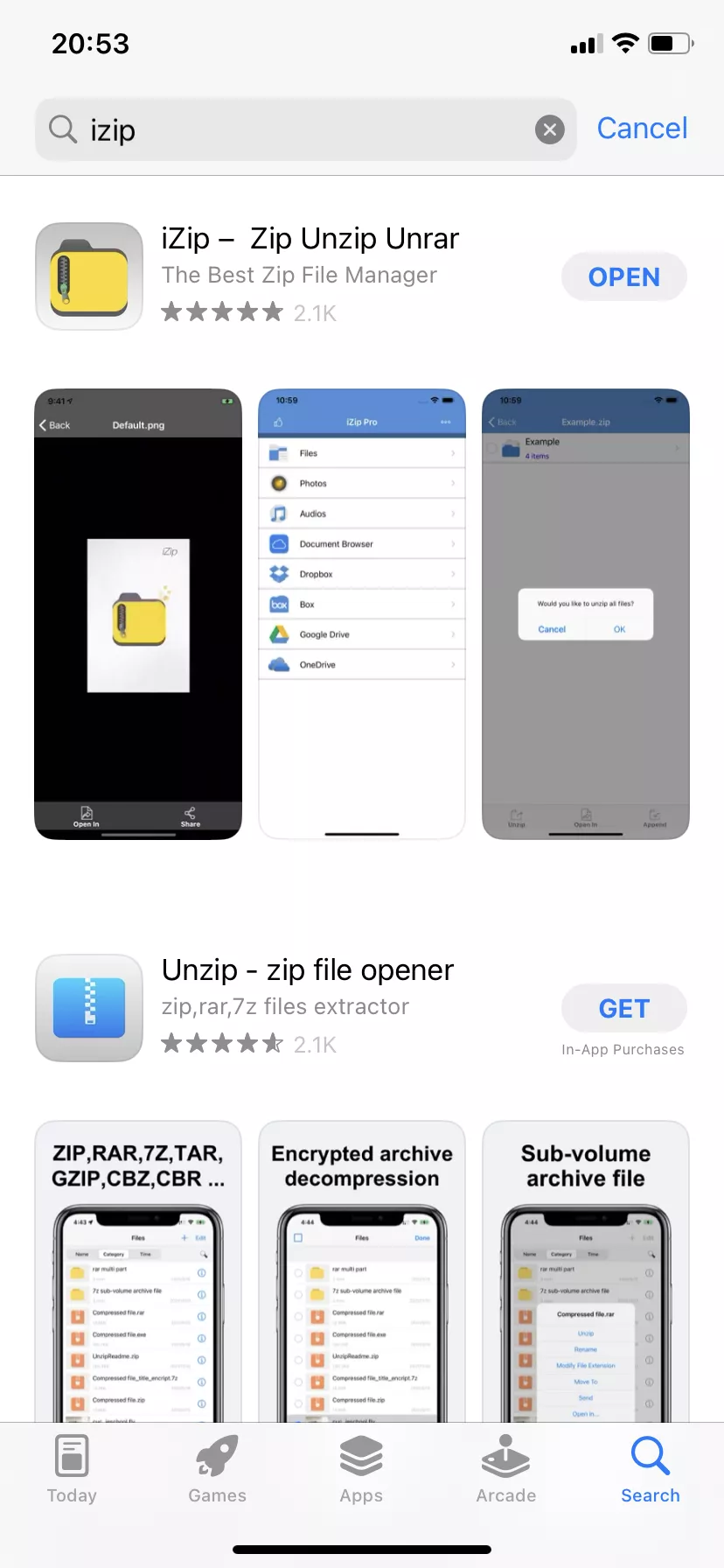 Οι χρήστες iPhone μπορούν να αποσυσκευάσουν αρχεία RAR με την εφαρμογή iZip ως εξής:
