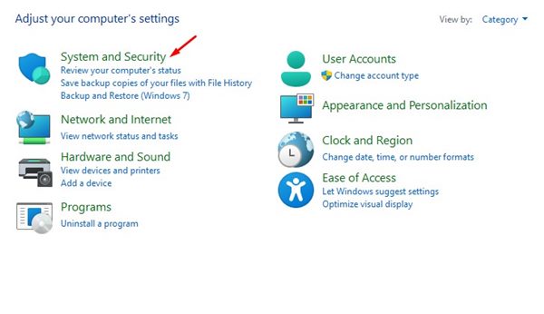 2. Κάντε κλικ στοΣύστημα και Ασφάλειαενότητα όπως φαίνεται παρακάτω.