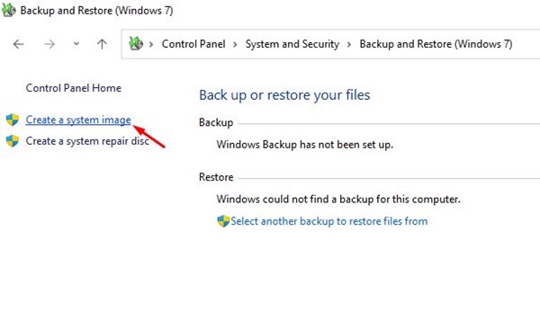 3. Κάντε κλικ στοΔημιουργία αντιγράφων ασφαλείας και επαναφορά (Windows 7).