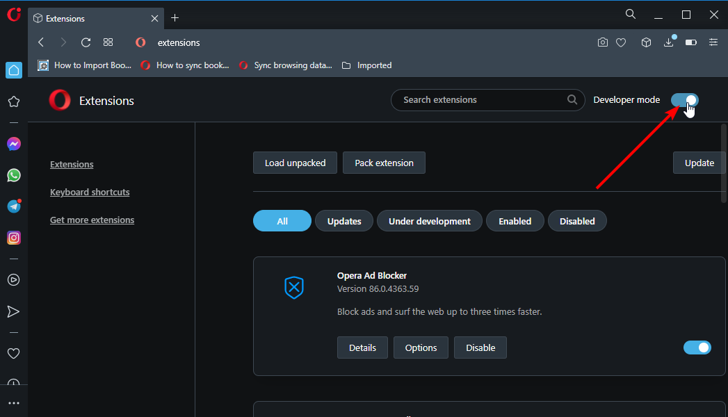 6. Αφού εγκαταστήσετε την επέκταση, πατήστεCtrl+Αλλαγή+ΚΑΙγια να ανοίξετε τις ρυθμίσεις επεκτάσεων Opera One.