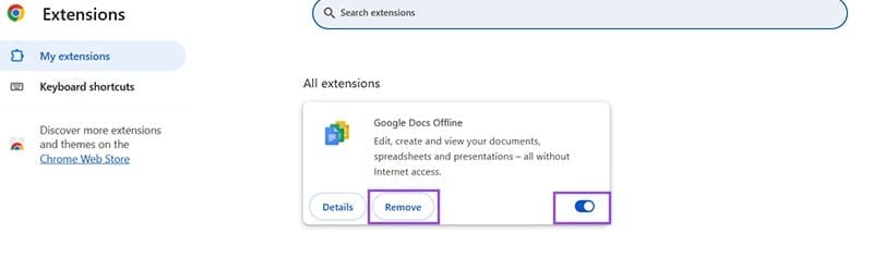 Βήμα 3:Ανατρέξτε στη λίστα για επεκτάσεις που δεν χρησιμοποιείτε συχνά. Μπορείτε να τα απενεργοποιήσετε, κάτι που τα απενεργοποιεί αλλά δεν τα διαγράφει ή μπορείτε να χρησιμοποιήσετε την Κατάργηση για να τα καταργήσετε εντελώς.