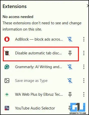 Για υπολογιστή, το κόλπο είναι λίγο διαφορετικό. πρέπει να κατεβάσετε μια επέκταση Chrome. Μόλις εγκαταστήσετε και καρφιτσώσετε αυτήν την επέκταση, όλες οι καρτέλες θα σταματήσουν να επαναφορτώνονται ή να ανανεώνονται αυτόματα και μπορείτε να συνεχίσετε την εργασία σας. Ακολουθήστε τα βήματα που αναφέρονται παρακάτω.