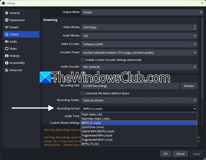 Εάν αυτό λειτουργεί, μπορείτε επίσης να επιλέξετε την ίδια μορφή βίντεο στο λογισμικό εγγραφής βίντεο. Τα βήματα για το OBS Studio εξηγούνται παρακάτω: