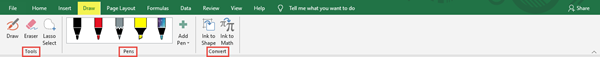 Στην καρτέλα Σχέδιο, θα βρείτε τρεις ομάδες όπως π.χΕργαλεία, στυλό και μετατροπή.