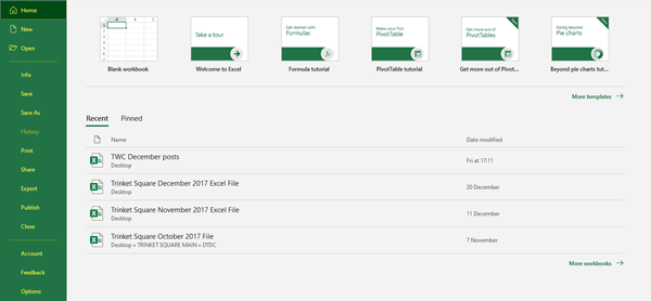 Η καρτέλα Αρχείο περιλαμβάνει εντολές για αποθήκευση, εκτύπωση, κοινή χρήση, εξαγωγή και δημοσίευση του εγγράφου. Μπορείτε επίσης να αποκτήσετε πρόσβαση στις πρόσθετες επιλογές του Excel και να κάνετε τις απαραίτητες αλλαγές στις ρυθμίσεις.