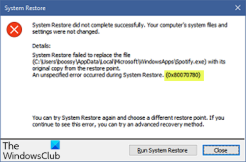 Σε όσοΕπαναφορά Συστήματοςείναι μια εξαιρετική δυνατότητα στα Windows 11/10 που μπορεί να χρησιμοποιηθεί για την επίλυση των περισσότερων προβλημάτων επαναφέροντας το σύστημα σε προηγούμενη κατάσταση λειτουργίας (στιγμιότυπο), η δυνατότητα έχει αρκετά λάθη. Ένα τέτοιο λάθος είναι0x80070780, που μπορεί να συναντήσετε όταν το επιχειρήσετεστη συσκευή σας. Αυτή η ανάρτηση παρέχει τις λύσεις σε αυτό το συγκεκριμένο σφάλμα.