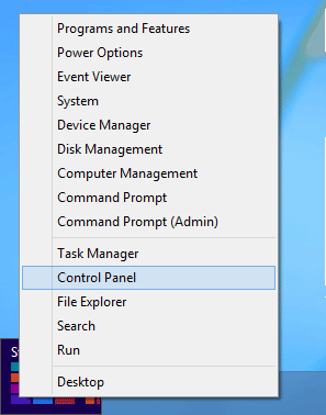 - Aloittaaksesi sinun on avattava Ohjauspaneeli. Paina vain Windows-näppäintä + X avataksesi Quick Access -valikon ja napsauta "Ohjauspaneeli“.