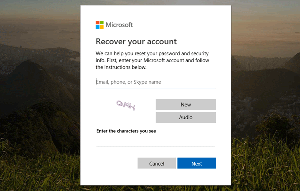 Vaihtoehto 2: Toinen vaihtoehto on nollata salasanasi verkossa. Siirry osoitteeseen account.live.com/password/reset millä tahansa selaimella, millä tahansa tietokoneella tai laitteella, mukaan lukien älypuhelimesi, ja nollaa salasana noudattamalla ohjeita.