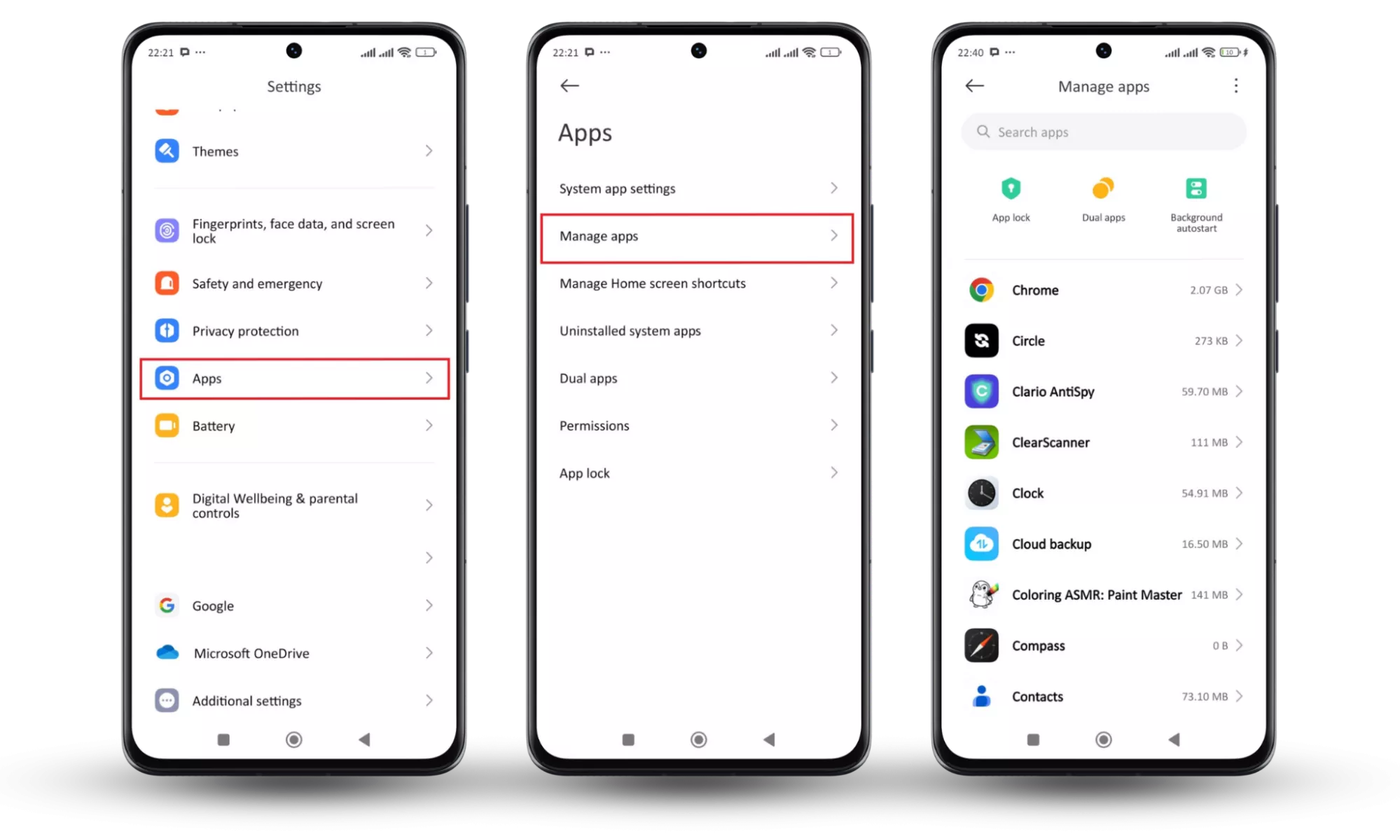 Vaiheet 1-3: Avaa asetukset > Napauta Sovellukset > Valitse Hallinnoi sovelluksia.Näin voit tarkistaa sovellusluettelosi iPhonessa: