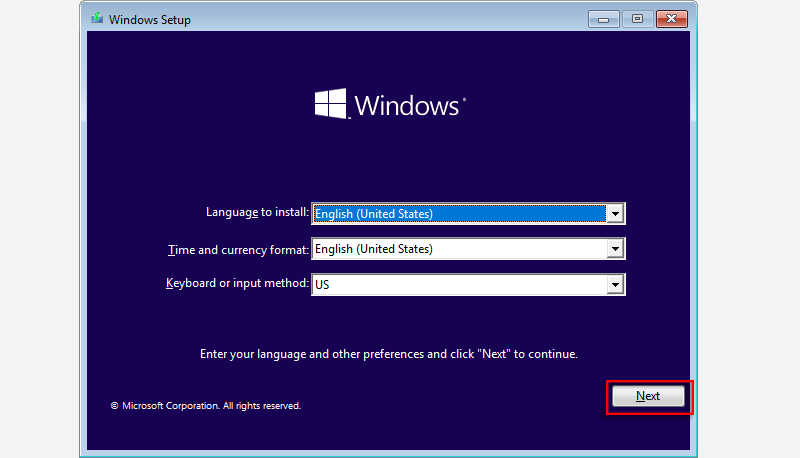 Vaihe 3:Napsauta Windowsin asennusikkunassaSeuraavaksi.