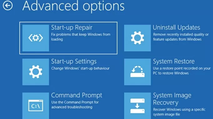 WinRE-palautusympäristössä on useita työkaluja, joiden avulla voit korjata erilaisia Windowsin ongelmia:
