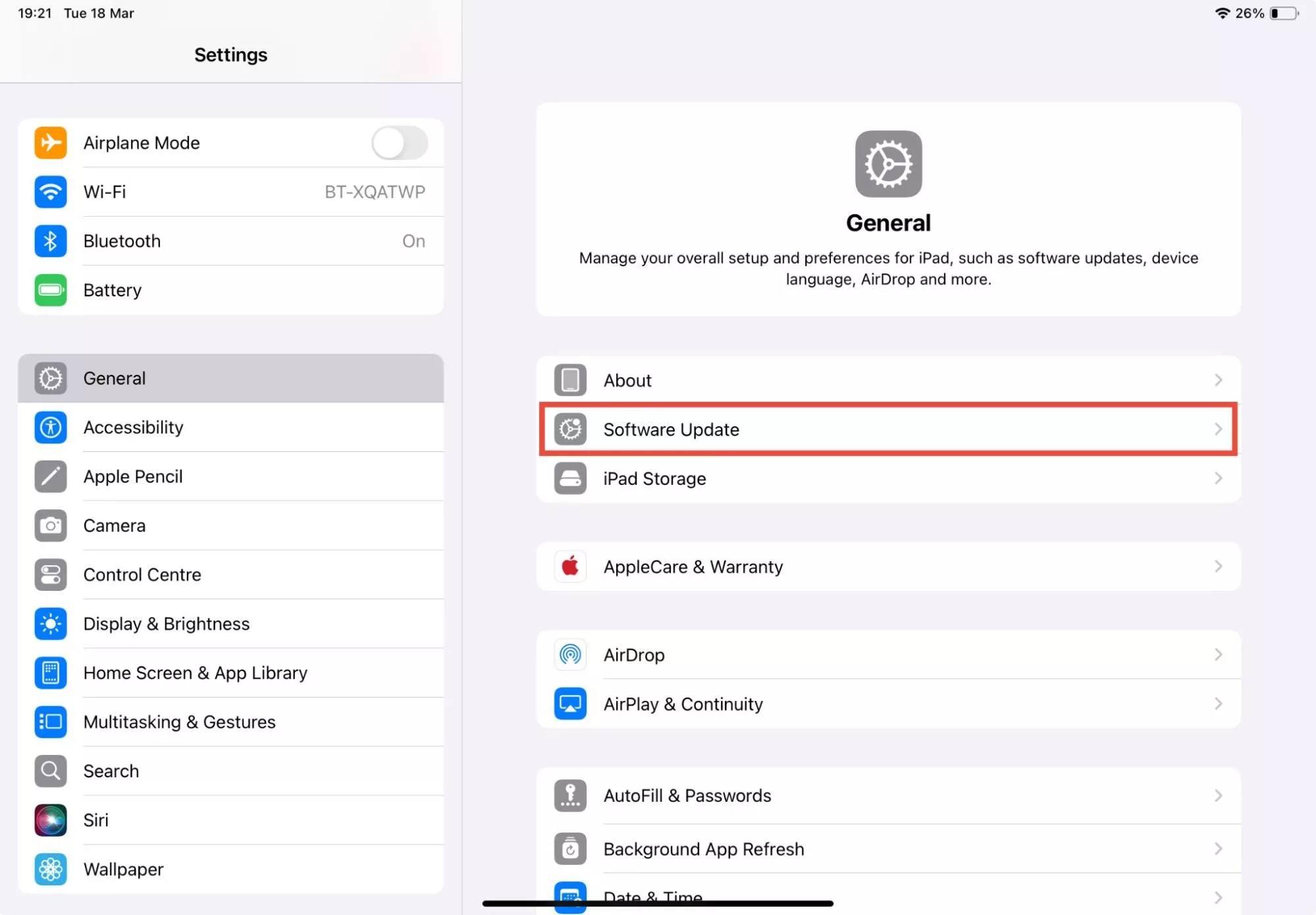 Vaihe 1: Siirry kohtaan Asetukset > Yleiset > Ohjelmistopäivitys