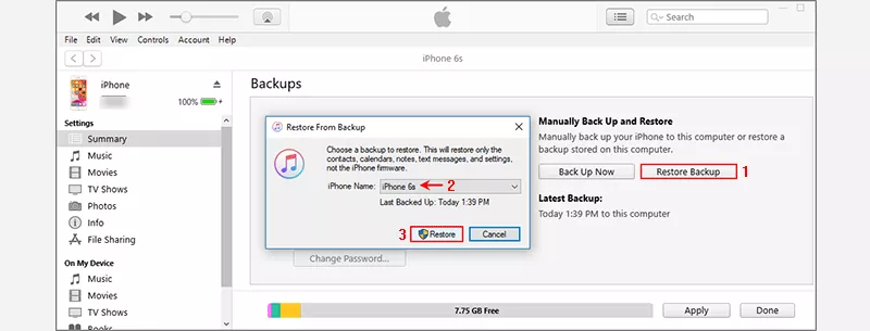 Jos ei, napsautaPalauta iPhoneja napsauta sittenPalauttaavalintaikkunassa