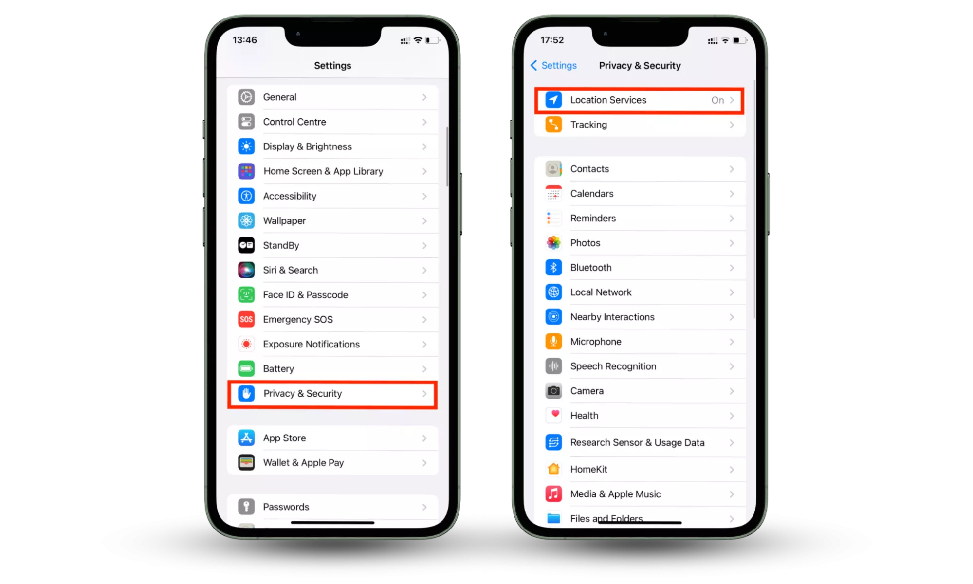 Vaiheet 1-2: Avaa Asetukset ja siirry sitten kohtaan Yksityisyys ja suojaus > Sijaintipalvelut.