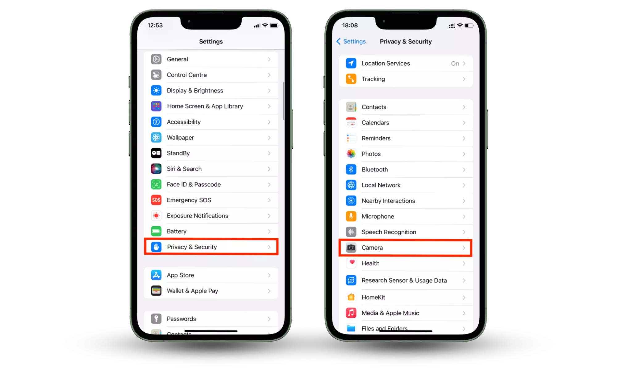 Vaiheet 1-3: Avaa Asetukset-sovellus, valitse Tietosuoja ja suojaus > Kamera ja kytke Instagramin mikrofonin käyttö pois päältä.Tai: