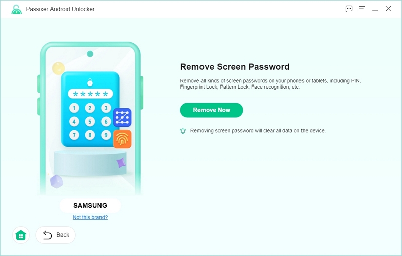 - Poistaa kaikenlaiset näytön lukitukset, kuten salasanan, PIN-koodin, kuvion, sormenjäljen ja kasvojentunnistuksen.