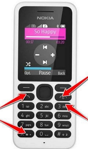 - Kun Nokia-logo tulee näkyviin, vapauta virtapainike, mutta pidä äänenvoimakkuuden lisäyspainiketta painettuna.