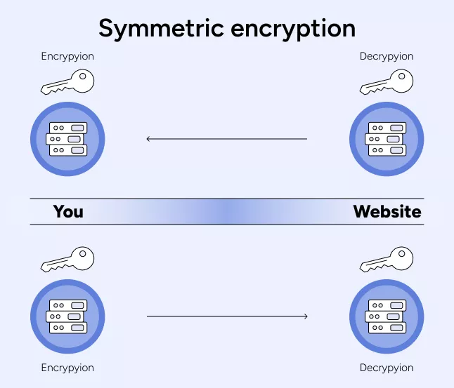 Symmetrisen salauksen pääominaisuus on, että se vaatii tiedon lähettäjältä ja vastaanottajalta samaa avainta. Esimerkiksi kun käytät verkkosivustoa katsoaksesi suosikkianinimeäsi tai -ohjelmaasi, laitteellasi ja palvelimella on oltava sama avain koodattujen tietojen vaihtamiseksi ja lukemiseksi.