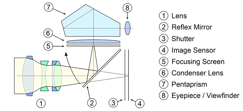 Kuten nimestä voi päätellä, peilittömästä kamerasta puuttuu peili, jonka läpi valo yleensä pomppii OVF:ään (Optical Viewfinder) tyypillisessä DSLR:ssä. Sen sijaan peilittömässä kamerassa valo putoaa suoraan sensoriin linssin kautta ja tiedot lähetetään EVF:ään (Electronic Viewfinder). OVF näyttää todellisen, muuttumattoman reaaliaikaisen näkymän kohtauksesta, kun taas EVF näyttää suoran esikatselun sen jälkeen, kun se on käsitelty anturilta.