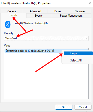 3. NapsautaYksityiskohdat-välilehti ja valitseLuokan GUIDkutenOmaisuus.