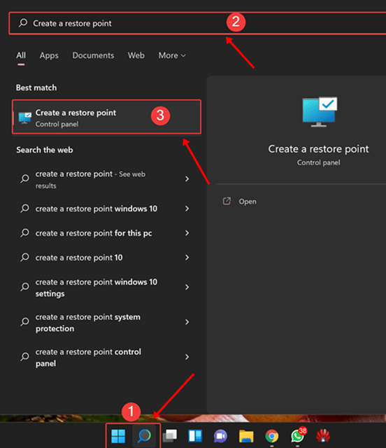 1. PainaWindows + S, etsiLuo palautuspisteja avaa se.