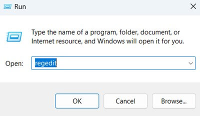 5. Paina nytWindows + Ravaimet yhdessä, kirjoitaregeditja napsautaOK.