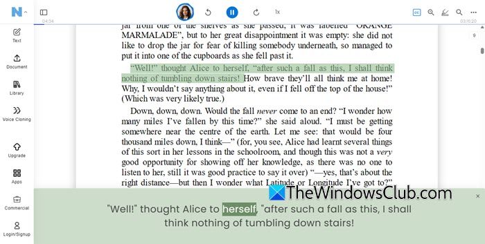 NaturalReader on ensisijaisesti saatavana verkkosovelluksena, mutta se tarjoaa myös ilmaisen työpöytäversion Windowsille (saatavilla Microsoft Storesta). Testasimme työpöytäversion ja se on melko helppokäyttöinen. Sinun tarvitsee vain ladata ja asentaa sovellus ja ladata e-kirja, jota haluat kuunnella. Kaikki tuetut eBook-muodot muunnetaan sisäisesti muotoiksiPDFs ja lue sitten ääneen. Voit valita haluamasi äänen ja ohjata lukunopeutta, jota voidaan lisätä jopa 5x, jolloin se voi lukea 900 sanaa minuutissa. Lisäominaisuudet, kuten skannattujen kuvien lukeminen jaMP3vienti on saatavilla, mutta tarvitset lisenssin käyttääksesi niitä.