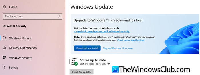 - Jos käytät Windows 10:n uusinta versiota ja sinulla on voimassa oleva Windows 10 -lisenssi, voitpäivitä Windows 11:een ilmaiseksisuoraan Windows Updaten kautta. Siirry osoitteeseenAsetukset > Tietosuoja ja suojaus > Windows Update. Jos tietokoneesi täyttää, sinun pitäisi nähdä vaihtoehto päivittää Windows 11:een.