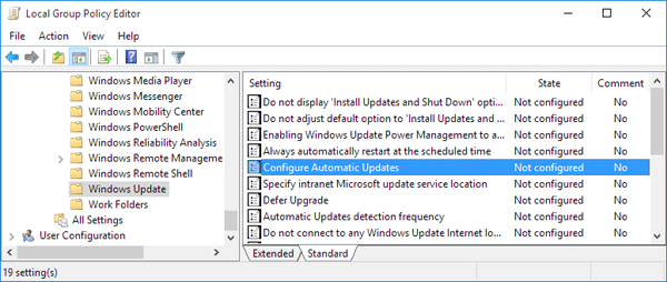 Computer Configuration\Administrative Templates\Windows Components\Windows Update - Maintenant, dans le volet de droite, double-cliquez surConfigurer les mises à jour automatiques.