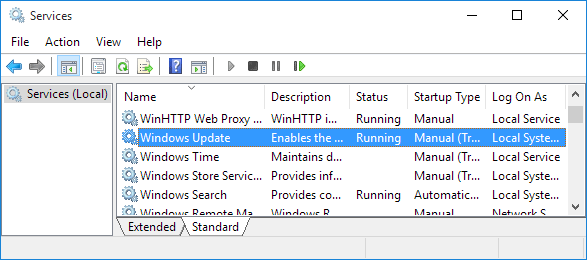 - Lorsque le gestionnaire de services s'ouvre, faites défiler vers le bas et recherchez le service "Mise à jour Windows» dans la liste.
