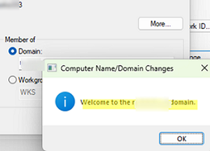 Ce comportement est dû aux mises à jour Windows publiées en octobre 2022 qui ont amélioré la sécurité de la réutilisation des comptes d'ordinateur existants dans Active Directory. Ces mises à jour empêchent un appareil de rejoindre un domaine AD en utilisant un compte d'ordinateur existant (pré-créé) (pour aider à se protéger contre les vulnérabilités critiques).CVE-2022-38042). Les exceptions sont les cas où :