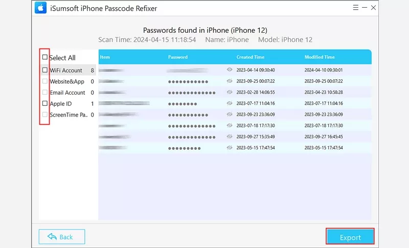 Mots de passe. Si vous souhaitez afficher et exporter les mots de passe enregistrés, iSoft iPhone Passcode Refixer