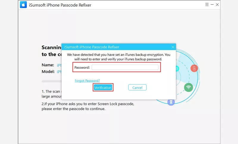 Étape 4 :Si vous avez configuré un cryptage de sauvegarde iTunes, vous devez saisir le