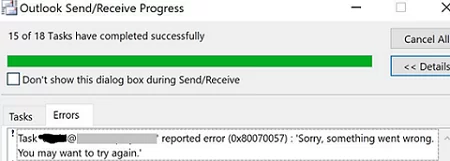 Task [email protected] reported error (0x80070057): 'Sorry, something went wrong. You may want to try again'