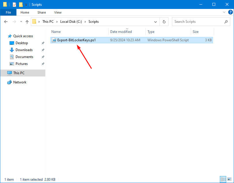Téléchargez le script PowerShell Export-BitLockerKeys.ps1 et placez-le dansC:scriptsdossier.
