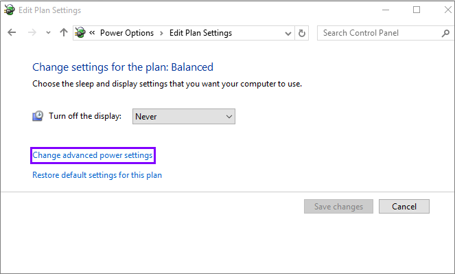 Étape 3: CliquezModifier les paramètres d'alimentation avancésdans l'interface suivante.