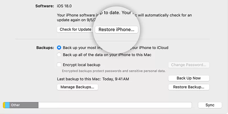 3. Ouvrez iTunes sur votre ordinateur (ou le Finder si vous êtes sur un Mac) et cliquez sur le bouton Restaurer l'iPhone.