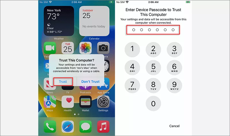 iPhone au Mac auparavant, vous serez invité à « Faire confiance à cet ordinateur ». RobinetConfiance,