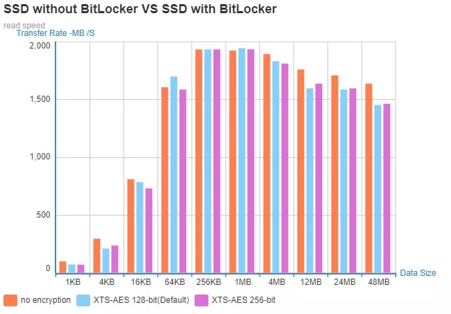 différents algorithmes de chiffrement BitLocker ont un léger impact sur les performances de lecture et d'écriture du SSD.