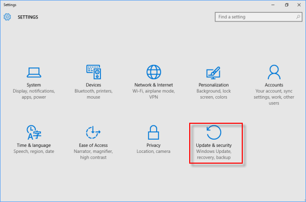 Étape 2 :SélectionnerMise à jour et sécurité.
