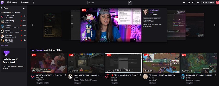 1.Connectez-vous avec un compte Twitch:Visitela page d'accueil officielle de Twitch et cliquez pourSe connecteret connectez-vous avec votre compte Twitch.
