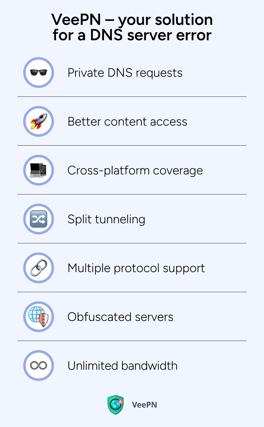 Vous disposez désormais de plusieurs options pour résoudre ces problèmes de « DNS ne répond pas » que vous avez rencontrés. Mais qu’en est-il de les prévenir et de ne pas s’embêter avec toutes ces démarches fastidieuses ? C’est là qu’un VPN comme VeePN brille !