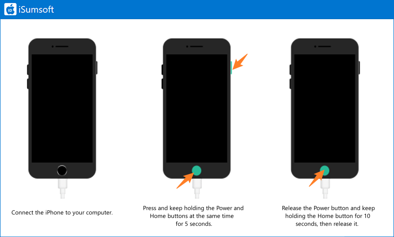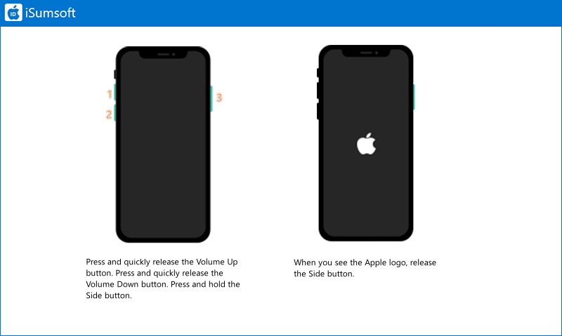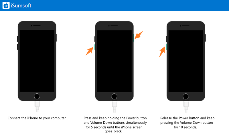 1 : Après avoir connecté l’iPhone au PC, appuyez et maintenez enfoncé le boutonBaisser le volumeet