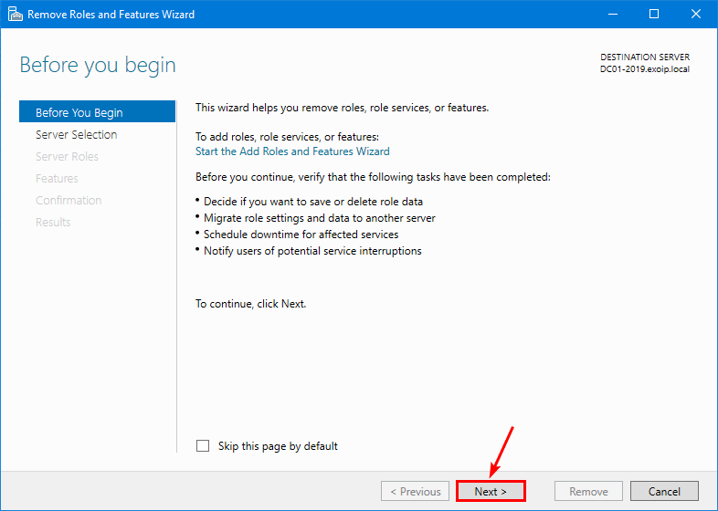 Dans notre exemple, nous supprimerons le contrôleur de domaineDC01-2019.