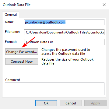 Comment définir un mot de passe sur le fichier de données Outlook 2016 ?
