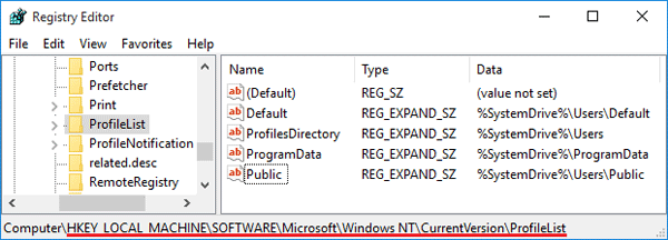 HKEY_LOCAL_MACHINE\SOFTWARE\Microsoft\Windows NT\CurrentVersion\ProfileList