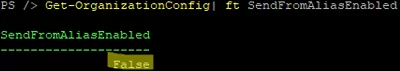 Get-OrganizationConfig| ft SendFromAliasEnabled