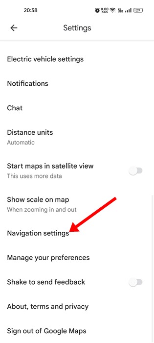 4. Dans les paramètres, appuyez surParamètres de navigation.