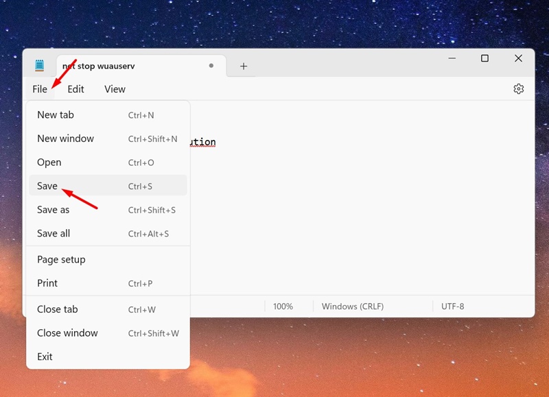 4. Créez un script pour vider le cache de Windows Update