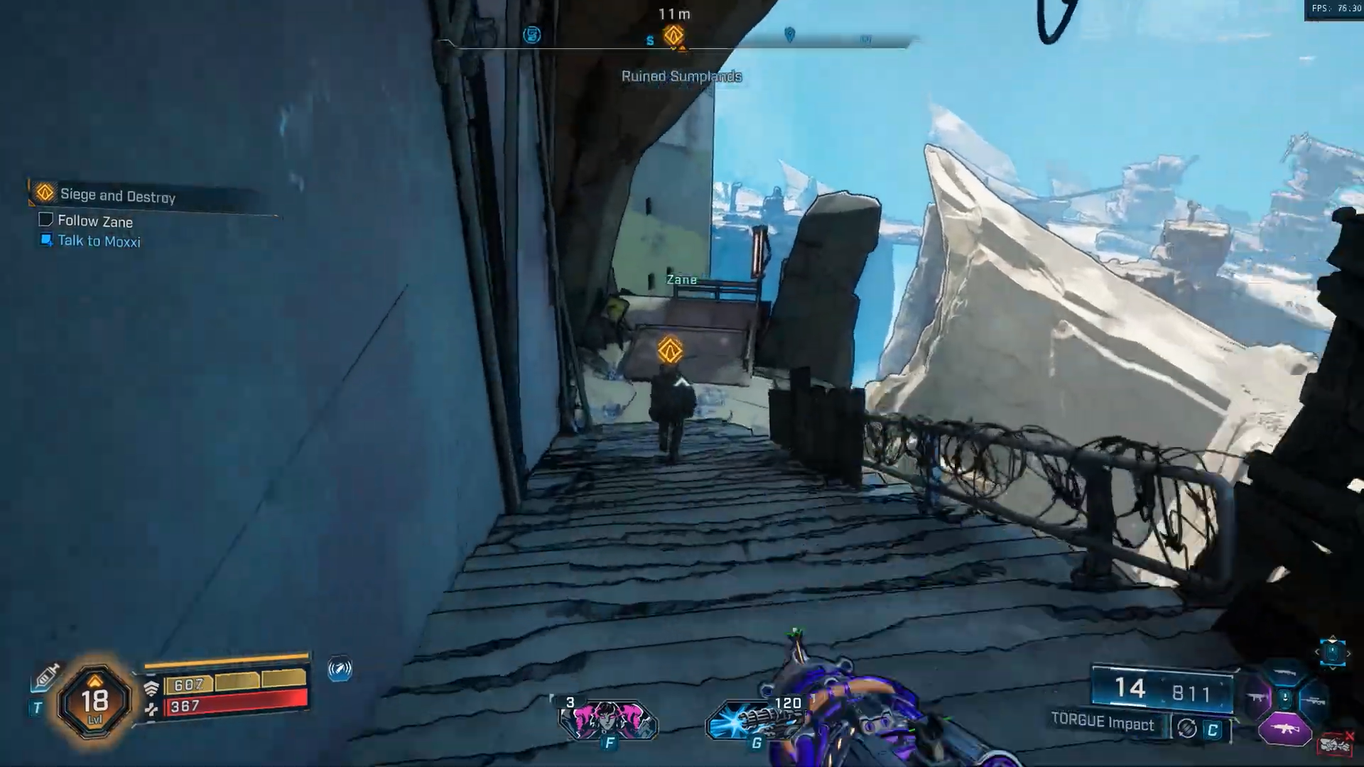 Suivez votre marqueur de mission vers le premier site de catapulte Ripper. Battez les ennemis qui l'entourent avant de grimper sur la machine à l'aide de cordes ou de débris à proximité.